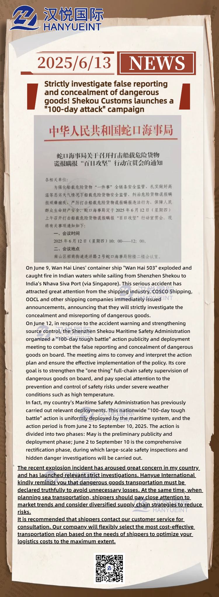 Strictly investigate false reporting and concealment of dangerous goods! Shekou Customs launches a "100-day attack" campaign