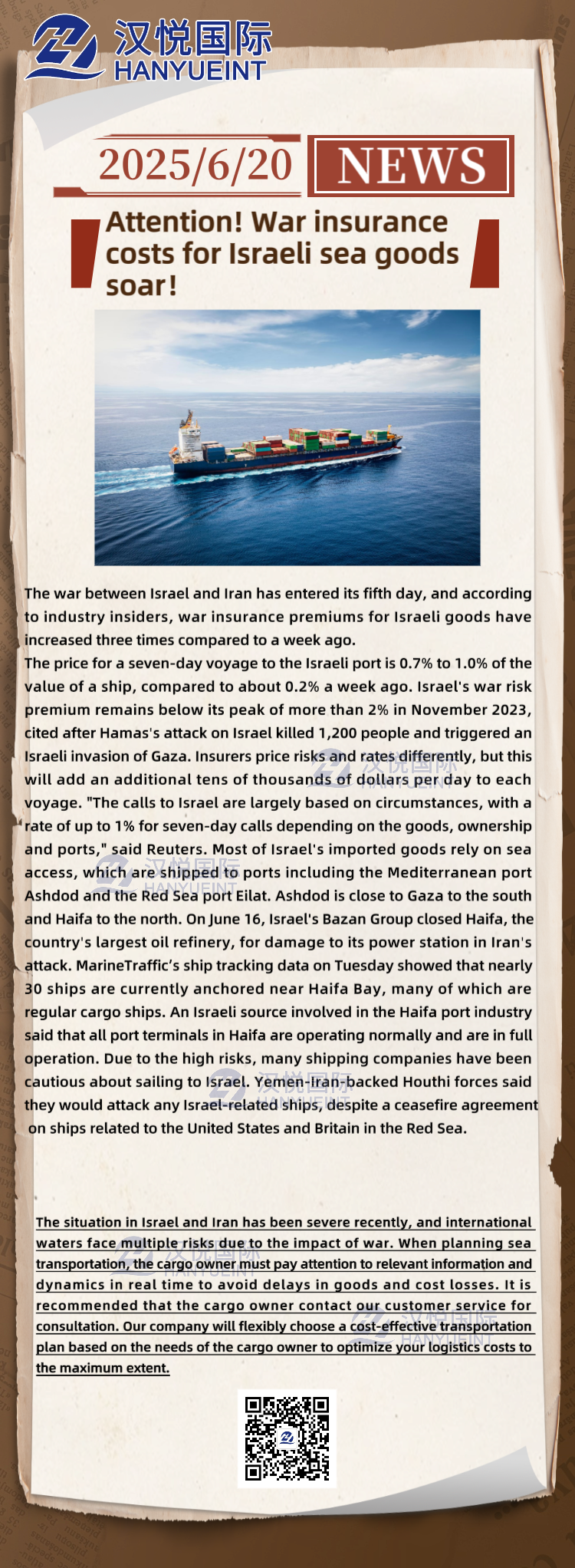 Attention! War insurance costs for Israeli cargo shipping soar!