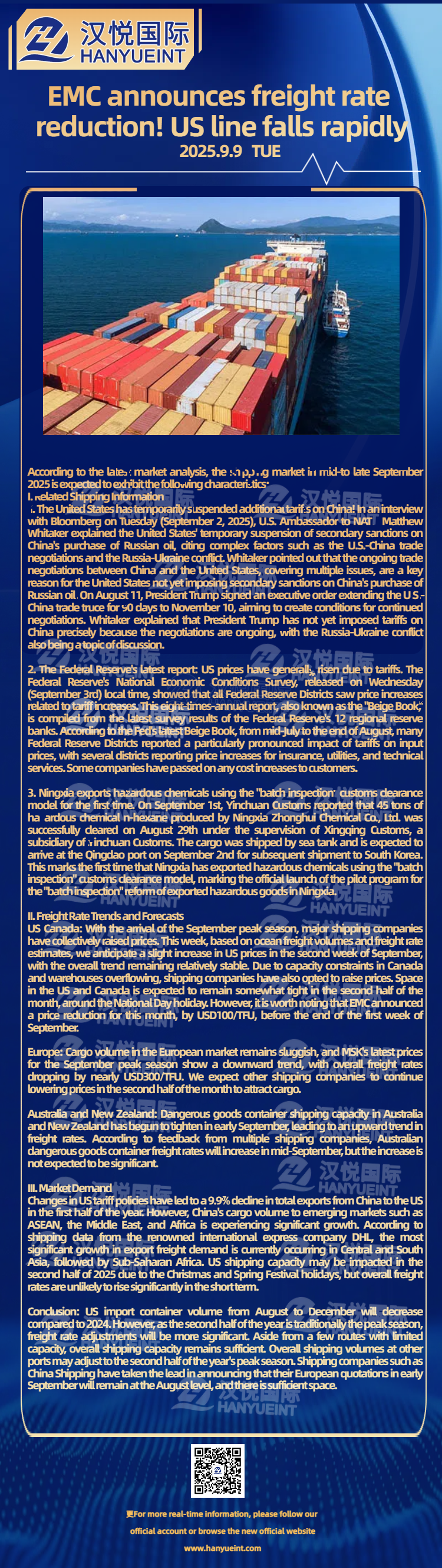 EMC notifies freight rate reduction! US line falls rapidly